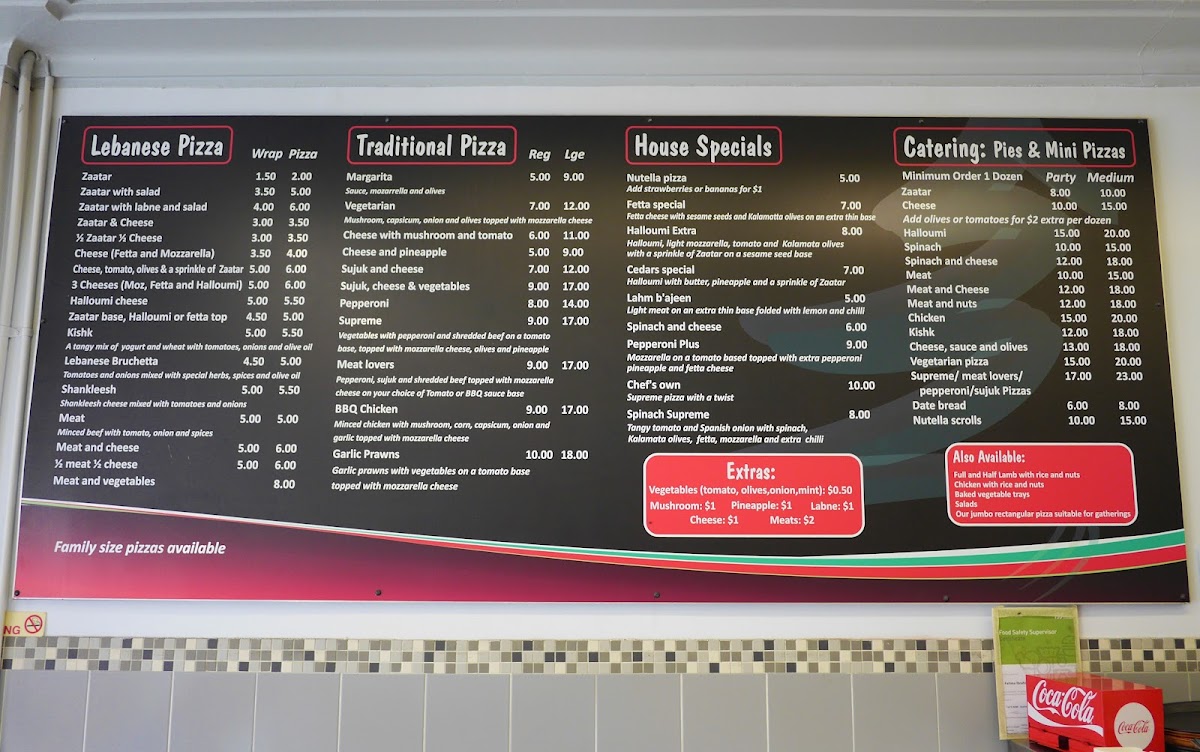 The menu at Cedars Pizza & Bakery offers a straightforward selection of authentic Lebanese-style pizzas and baked goods, perfect for casual meals or quick takeout. You’ll find a range of comforting flavors, from traditional manoush topped with zaatar and cheese to house specials featuring ingredients like halloumi and sujuk.